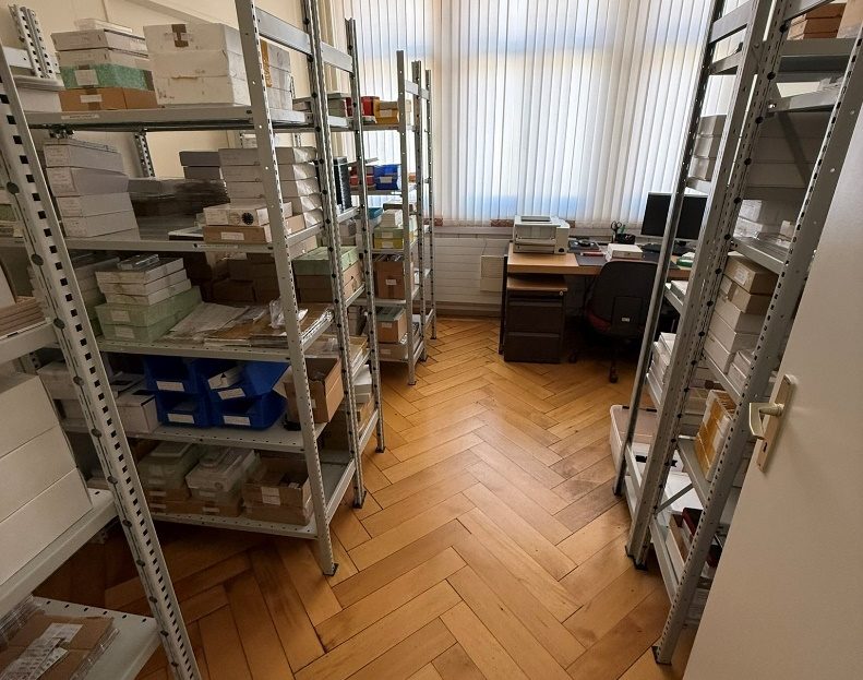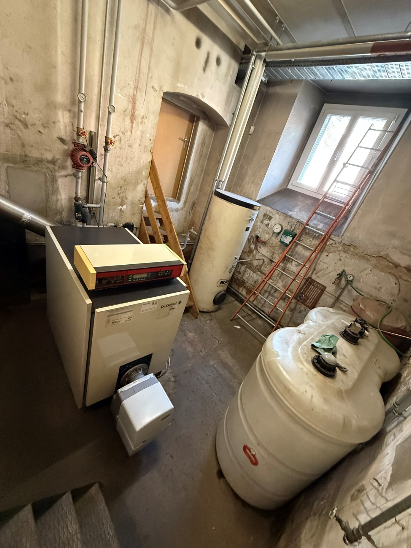 – Sous-sol : 215 m² + cage d’escalier, entrepôt et chaufferie (103 m²)